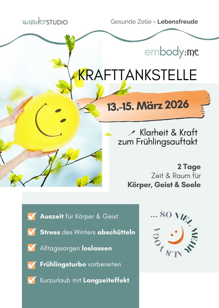 Mit dem Klick auf "Jetzt anmelden" melde ich mich verbindlich zur Frühlings-Krafttankstelle von 13. - 15. März 2026 an.